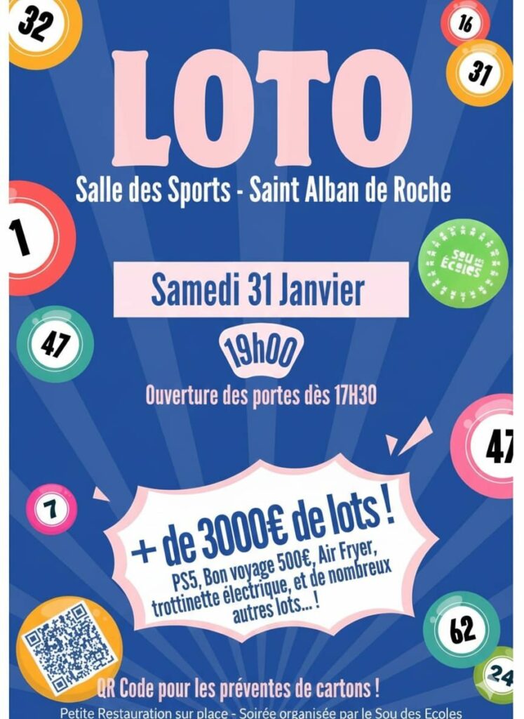 Samedi 31 janvier : Loto du SOU des ECOLES à la Salle des Sports
