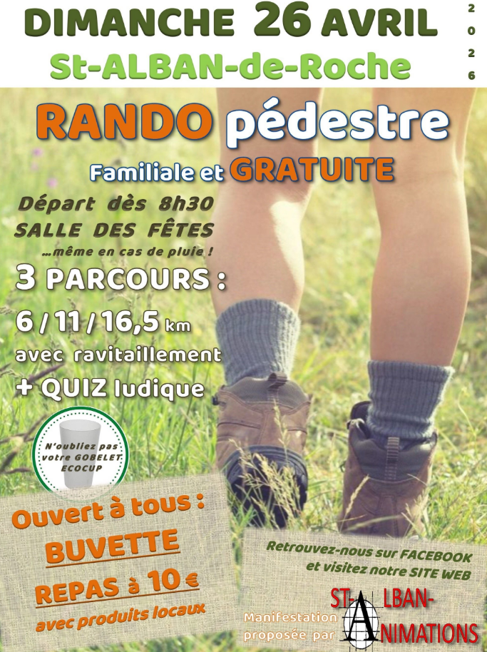 Dimanche 26 avril : Randonnée familiale de ST ALBAN ANIMATIONS à la Salle des Fêtes
